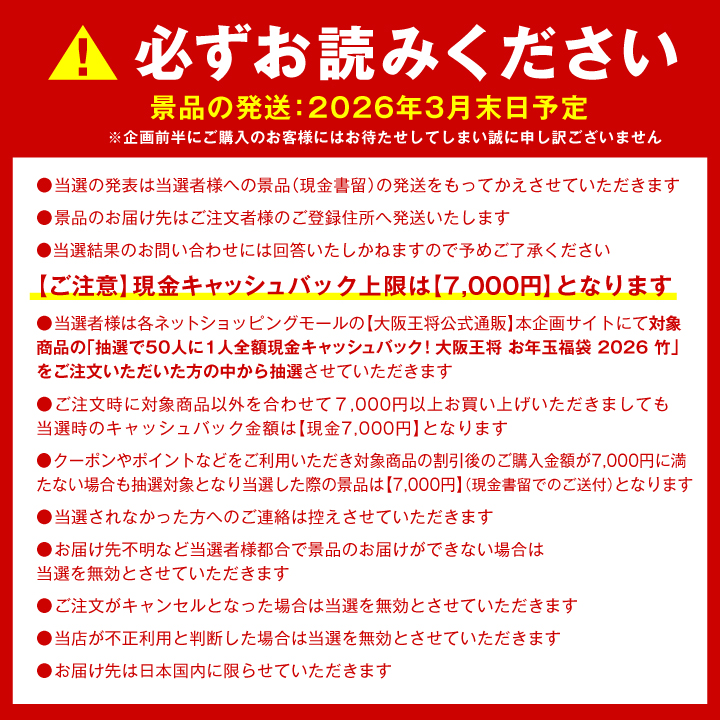 抽選で50人に1人全額現金キャッシュバック!大阪王将 お年玉福袋 2026 竹